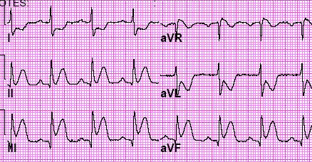 Fortunately, recognizing the inferior STEMI is a bit more straightforward. This MI involves ST segment elevation in the inferior leads II, III and aVF and only requires 1 mm in 2 contiguous leads. There is usually reciprocal depression in leads I and aVL, which helps to distinguish this from pericarditis. There is not a lot of variation in how an inferior MI looks in regards to shape or ST segments; however, some are more dramatic than others based on the amplitude of ST segment elevation. Also, during an inferior MI, the ST segment elevation is usually concave upwards.